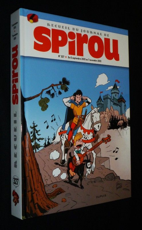 In-4 (21 x 29,5 cm), album cartonné, 1er plat illustré, recueil n°327 du journal Spirou, du n°3882 (5 septembre 2012) au 3891 (7 novembre 2012) ; comme neuf.