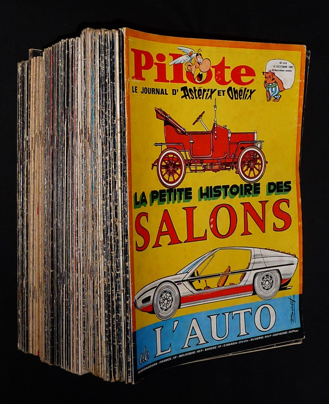 In-4 (23,8 x 31,7 cm), dos agrafé, lot de 68 numéros de "Pilote" : 416 (12 octobre 1967) / 452 / 454 / 468 à 472 / 475 / 476 / 478 à 483 / 485 / 487 à 489 / 491 / 497 / 505 / 510 / 515 / 528 / 539 à 552 / 556 / 566 / 590 / 592 / 593 / 612 à 624 / 631 / 656 / 659 / 663 à 665 / 670 / 671 / 673 (28 septembre 1972) ; dos usés, incidents aux plats (pliures, frottements, traces, froissements) plus ou moins importants selon le numéro, par ailleurs assez bon état général.
