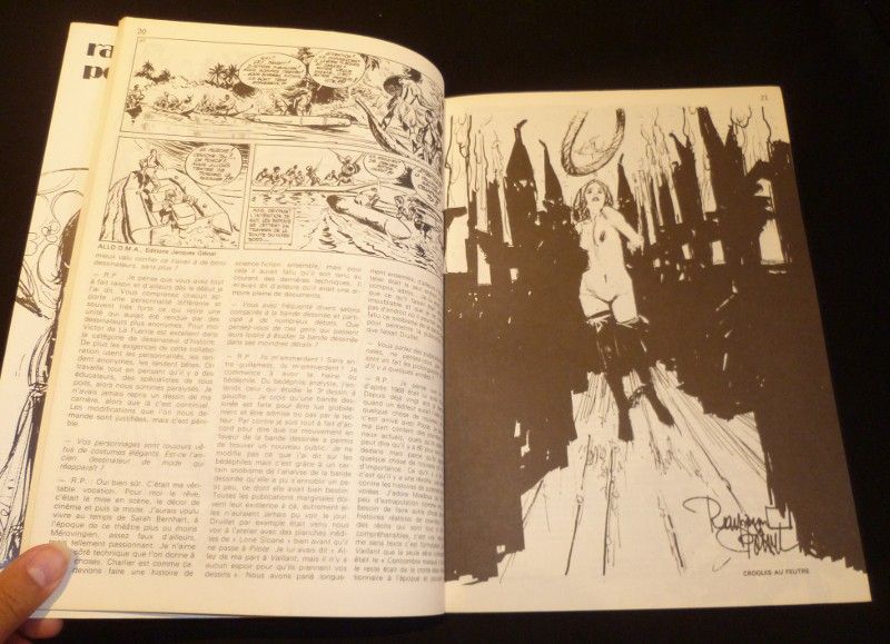 In-8 (21 x 29,5 cm.), magazine au dos agrafé, couverture illustrée, 50 pages, illustrations noir et blanc in-texte, épuisé ; dos, coiffes et bords un peu frottés, plats défraîchis, intérieur frais, bon état.