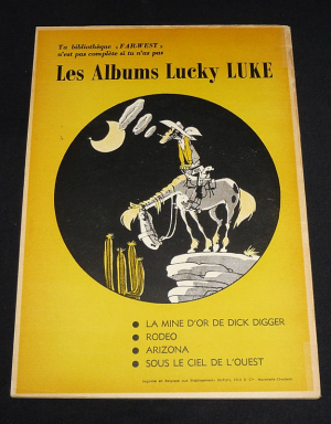 In-4 (20,8 x 29,7 cm), broché, 45 pages, sans date, avec une superbe 4e de couverture faisant la publicité des album de Lucky Luke ; réparation au ruban adhésif et petite mouillure au dos, par ailleurs assez bon état.