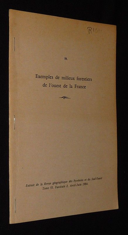 In-8 (16 x 24 cm), plaquette agrafée, paginée de 262 à 300, extrait de la Revue géographique des Pyrénées et du Sud-Ouest, Tome 55, Fascicule 2, avril-juin 1984 ; pliure et ex-libris manuscrit...