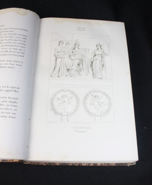 In-4 (19 x 27,5 cm), reliure cartonnée, 104 et 49 pages, deuxième série et cinquième série des peintures, bien complet des planches annoncées dans l'avis au relieur c'est à dire de la planche 91 à 149 pour le deuxième série et 30 planches pour la cinquième série ; mors, coupes et coiffes légèrement usées, mouillure marginale en tête d'ouvrage touchant toutes les pages, mais ne touchant pas le texte ni les gravures, sinon papier très frais, bon état général.