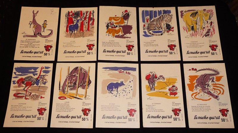 Lot de 10 buvards publicitaires "La Vache qui rit" série "Les animaux"