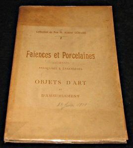 Collection de feu M. Albert Gérard. Faïences er porcelaines anciennes françaises et étrangères. Objets d'art et d'ameublement.