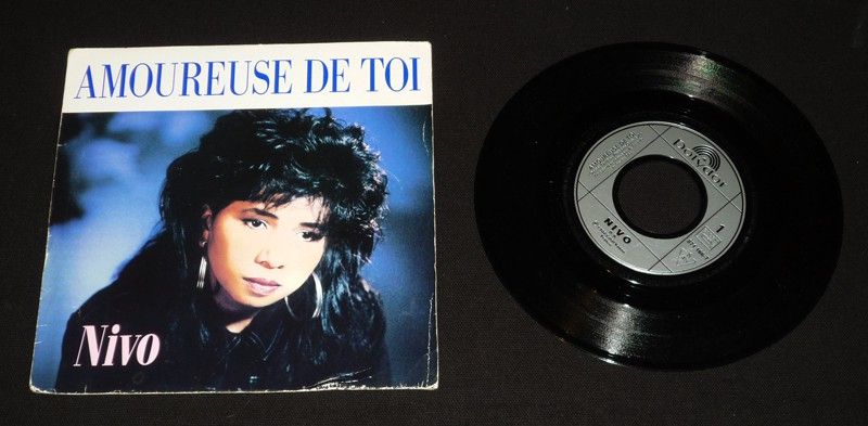 Disque vinyle 45T : "Amoureuse de toi" et "You Give Me So Much" de Nivo ; pliures et frottements sur les bords de la pochette, quelques traces sur l'arrière de la pochette, par ailleurs le disque...