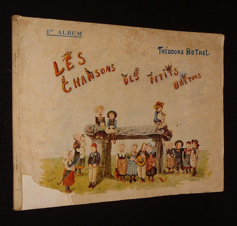In-4 (31,2 x 23 cm), format à l'italienne, album agrafé, non paginé, sans date ni mention d'éditeur, illustrations en couleurs, ce recueil comprend les chansons suivantes : Par le petit doigt - Le mouchoir rouge de Cholet - Les Tout-petits - Les Petits Sabots - La Ronde des châtaignes - Berceuse blanche ; déchirures et pliures sur les bords des plats, manque dans un coin du premier plat, plats défraîchis, en l'état.