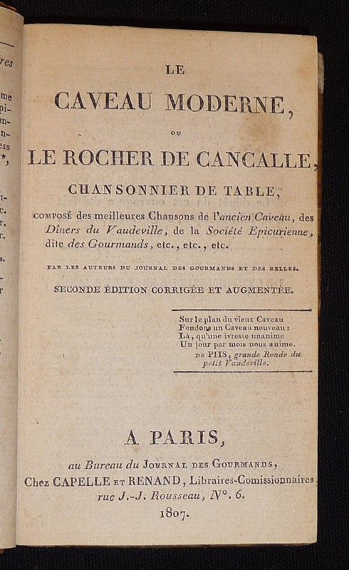 Le Caveau moderne, ou le rocher de Cancalle, chansonnier de table, composé des meilleures chansons de l'ancien Caveau, des Dîners du Vaudeville, de la Société Epicurienne, dite des Gourmands, etc.