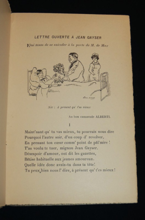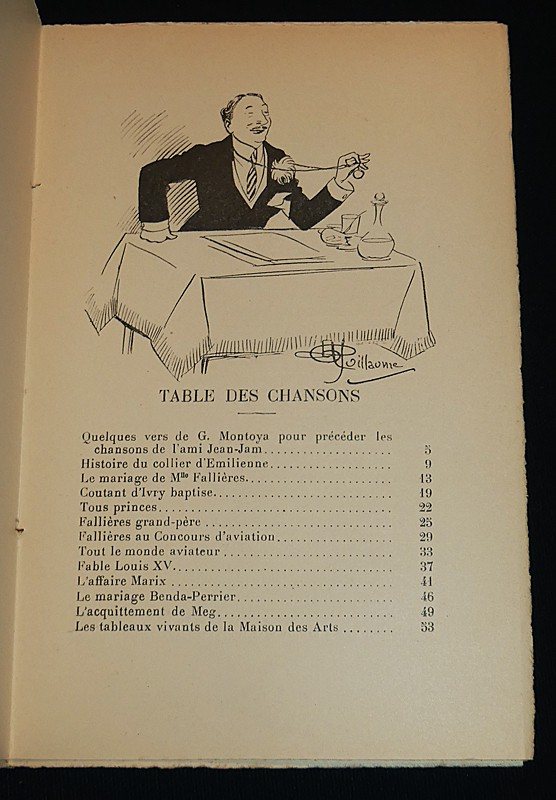 In-12 (12 x 18 cm), broché, premier plat illustré en couleurs, non coupé, 214 pages, sans date, charmante et rare publication, recueil de vers et chansons illustrés en noir et blanc, avec tampon de l'auteur "Jean-Jam" au faux titre ; une petite plissure au dos, par ailleurs très bel exemplaire.