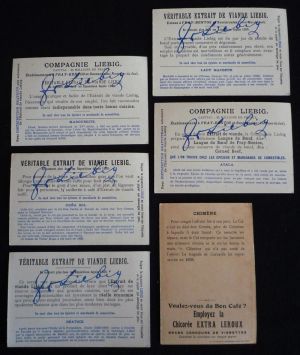 6 chromos Liebig : Histoire de la porcelaine (série complète avec enveloppe d'origine)