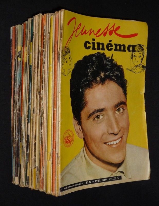 In-4 (18,5 x 27 cm), dos agrafé, lot de 34 numéros à suivre de "Jeunesse cinéma", soit du n°29 (avril 1960) au n°60 (novembre 1962 + 2 numéros spéciaux (juillet-août-septembre 1960 et janvier-février-mars 1962), iconographie en noir et blanc ; certains numéros fragilisés aux agrafes, ou couverture désolidarisées, traces et marques d'usage plus ou moins importantes selon le volume, en l'état.