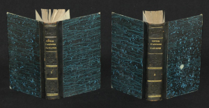 Deux volumes in-16 (9 * 14,1 cm), faux-titre, titre, xvi et 287 pages pour le premier volume, le second volume comprend : faux titre, titre, 144 pages (Les quatres Facardins), puis 222 pages (suite...