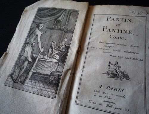 In-12 (11,5 x 18,5 cm), broché, couverture muette, publié "l'An du Bilboquet 35", gravure en frontispice, paginé comme suit : â (Epître dédicatoire au public), 4-22 (discours préliminaire, chansons, fable à une dame), puis 24-179 ; manques sur le dos, bords des plats et du corps d'ouvrage brunis et abîmés, par ailleurs intérieur assez frais, état correct.
