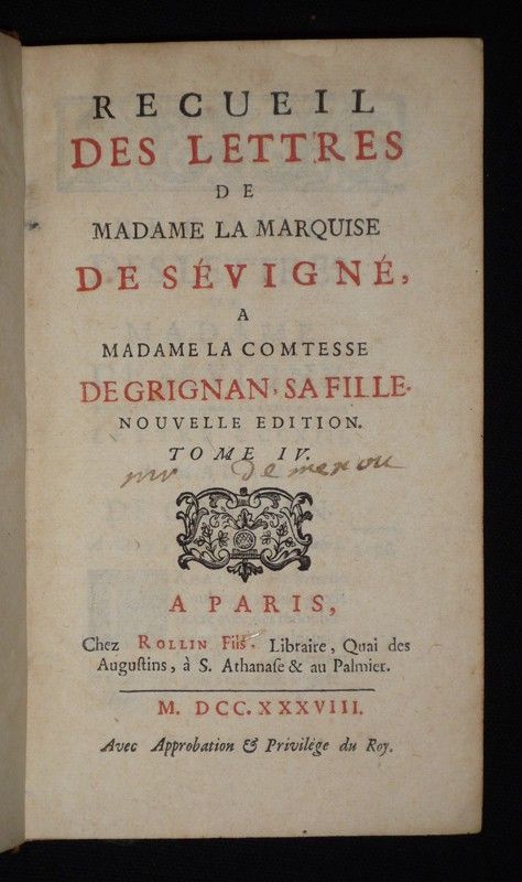 In-12 (10,5 x 16,8 cm), reliure plein veau, dos à 5 nerfs orné de caissons dorés d'une pièce de titre et de tomaison, 441 pages + table non paginée, tome 4 seul ; cuir craquelé au dos, manque de cuir à la coiffe supérieure, coins usés, ex-libris tamponné en fin de volume, par ailleurs assez bon état.