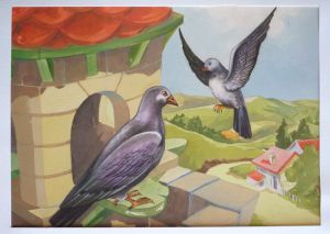 Dessin original de Dupuich pour l'album "A la campagne" : Oiseaux