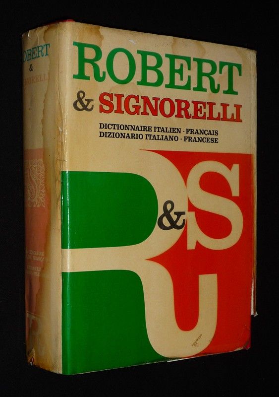 In-4 (18 x 24,5 cm), cartonné avec jaquette, 3002 pages, dictionnaire italien -français ; exemplaire très abîmé, mors supérieur fendu, dos décollé du corps d'ouvrage, mors inférieur fendu aux coiffes, taches sur les tranches, jaquette abîmée (mouillure au dos et au premier plat, déchirures et pliures sur les bords..), en l'état.
