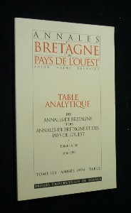 Table analytique des annales de Bretagne et des annales de Bretagne et des pays de l'ouest : tome 1 à 100, 1886-1993