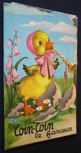 In-4 (28*22), reliure demi-toile, cartonnage illustré en couleurs, 19 pages non paginées, illustrations en couleurs ou bichromes (noir et rouge ou noir et vert), sans date ; nombreuses traces de...