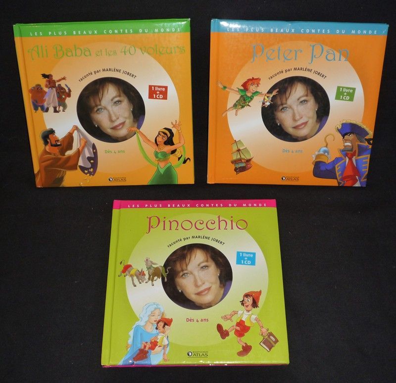 Trois volumes in-8 (19,5 x 19,7 cm), albums cartonnés, 30 pages par volume, illustrations en couleurs (SANS les CD contenant les contes racontés par Marlène Jobert) ; petit défaut à la coiffe supérieure de "Pinocchio", par ailleurs très bon état général.