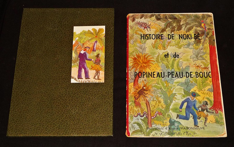 In-4 (18,5 x 27,2 cm), album cartonné, non paginé, sous chemise cartonnée reliée par un amateur, illustrations en couleurs de Alvyne Maisonneuve ; dos et bords des plats frottés, petit manque dans le coin inférieur du premier plat, quelques traces et plissures d'usage aux plats, par ailleurs assez bon état.