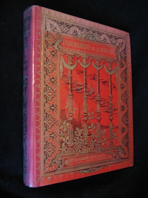 In-8 (19 x 24 cm), cartonnage polychrome de l'éditeur, fleur sur le premier plat, titre en noir, fleur dorée sur le dos, titre à l'or, tranches rouges, sans date, 325 pages, illustré en noir...