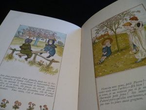 In-12 (12.5x17 cm), cartonnage d'éditeur, dos toilé, plats illustrés, tranches roses, 48 pages, avec les dessins en couleurs de Kate Greenaway ; plats salis, coiffes et coins à peine frottés, rousseurs à l'intérieur, bon état.
