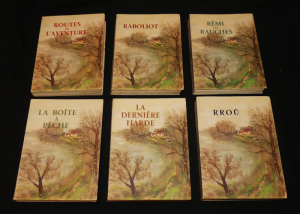 Six volumes in-8 (16,5 x 21,2 cm), brochés sous couverture rempliée, sans date, exemplaires numérotés sur vélin de Lana, cet ensemble comprend les titres suivants : Routes de l'aventure (244 pages, illustré par Pierre-Eugène Clairin) // Raboliot (274 pages, illustré par Paul Jarach) // Rémi des Rauches (234 pages, illustré par Jacques Thevenet) // La Boîte à pêche (191 pages, illustré par André Collot) // La Dernière Harde (222 pages, illustré par Odette Denis) // Rroû (272 pages, illustré par A. D. Steinlen) ; pliueres aux dos, brunissure à la coiffe supérieure de deux volumes, par ailleurs bel état.