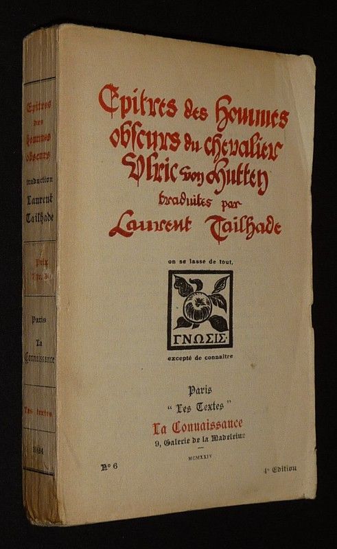 In-12 (11,7 x 18,5 cm), broché, 296 pages ; pliures au dos et plats, déchirure sans manque réparée au ruban adhésif au quatrième plat, dos et bords des plats brunis, par ailleurs assez bon état général.