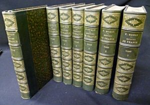In-8 (20,5 x 13,5 cm), demi-basane, paginé vj-xxiv et 2-583, tranches rouges, carte dépliante noir et blanc ; tome trente-cinquième contenant la suite de l'Histoire de France, depuis l'avènement...