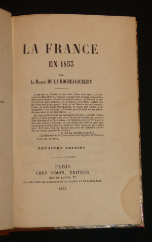 In-12 (12 x 18,3 cm), reliure demi-peau, dos à 4 nerfs, couverture conservée, 266 pages, dos insolé, couverture conservée usée, rousseurs à l'intérieur, par ailleurs assez bon état.