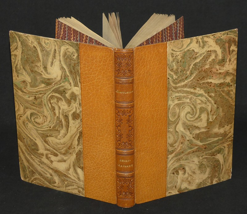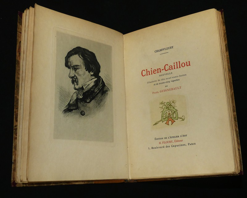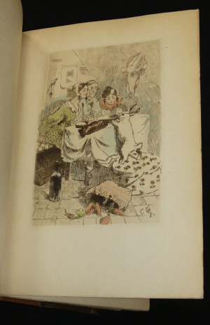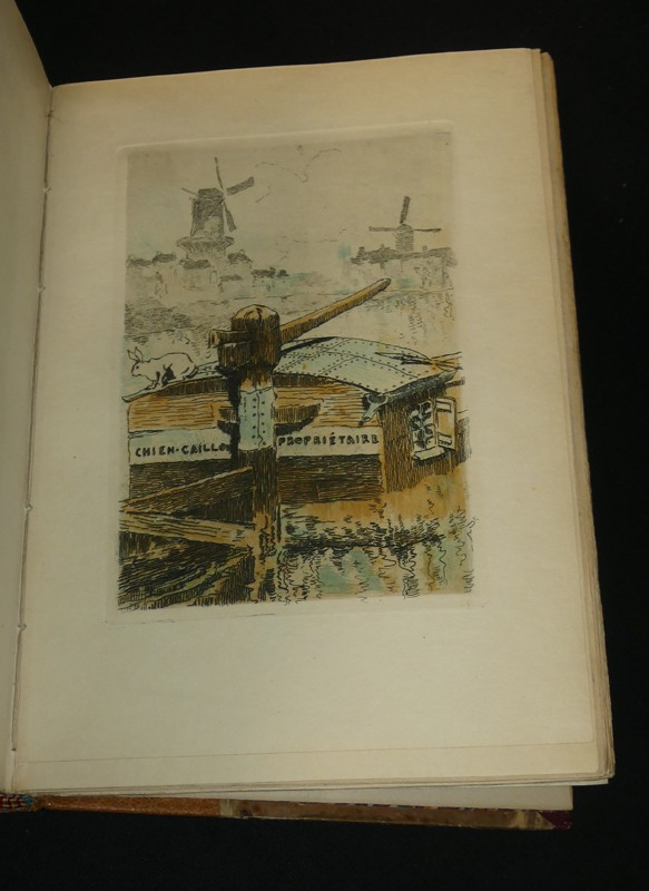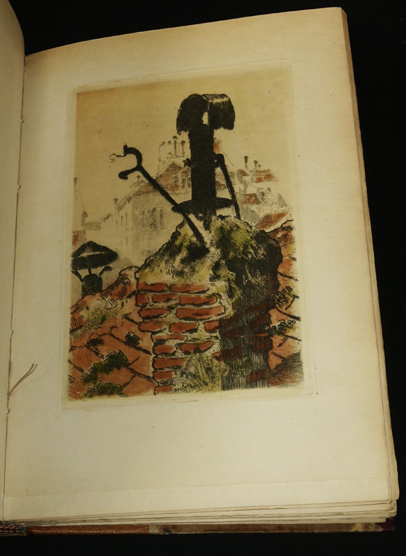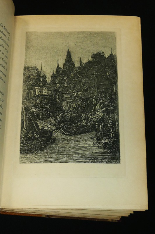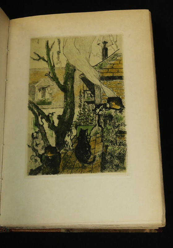 In-8, demi-maroquin havane, dos orné à 4 nerfs, tête dorée, couverture et dos conservés, non rogné. Un des 30 sur Japon (deuxième papier), contenant un double état des illustrations de Paul Guignebault, réparties en 19 eaux fortes et 35 vignettes. Exemplaire très intéressant et fort bien établi.