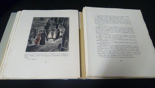 In-8 (20.5x25.5 cm), livre en feuilles sous couverture rempliée, chemise et emboîtage, l'ouvrage de Balzac est illustré d'eaux-fortes en couleurs de Jean Traynier dans le texte, exemplaire d'artiste signé par l'illustrateur ; les mors de la chemise sont déchirés (restaurés avec du scotch), les coins de l'emboîtage sont frottés, bel exemplaire pour ce texte d'Honoré de Balzac.