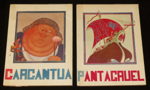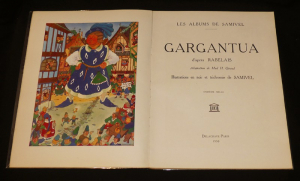 Deux volumes in-4 (25 x 32 cm), brochés avec jaquettes rempliées, adaptations de Gargantua et Pantagruel de Rabelais par H.-Giraud Mad, illustrations en noir et trichromie de Samivel ; pliure aux dos, quelques petites traces aux plats, par ailleurs beaux exemplaires.