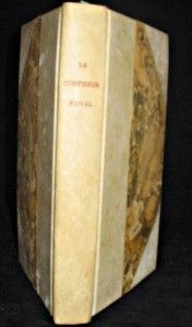 In-12 relié, demi vélin à coins, 6° édition, 2 planches in fine dont une reliée à l'envers, 334 pp., l'édition de 1818 possède un frontispice que nous ne retrouvons pas sur notre exemplaire, les pages 41 à 48 sont intercallées entre les pages 64 et 65 et autre fantaisie du relieur, nous trouvons page 39 une gravure dont l'appartenance à l'ouvrage semble plus que douteuse, (l'indication au relieur indiquant volume VII page 141) contient la manière de faire les confitures, marmelades ..., des instructions sur la distillation, divers articles concernant l'office et la patisserie, enfin des recettes d'économie domestique ; des rousseurs, intéressant ouvrage bien complet du texte quoique dans le désordre. Oberlé 175 et 176 pour la 5° et la 7° édition de ce classique.