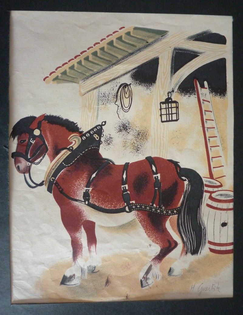 Illustration en couleurs (20 x 25 cm sur support 24 x 28 cm) par H. Guertik, tirée d'un "album du père castor" ; papier légèrement froissé en queue, par ailleurs bon état.