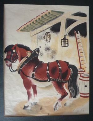 Illustration en couleurs (19 x 24,5 cm sur support 23,7 x 27,8 cm) de Hélène Guertik, tirée de l'album "La Ferme du Père Castor" ; petite déchirure sans manque dans la marge, bon état....