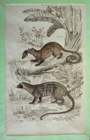Gravure en couleurs (env. 13 x 20 cm sur support 18,5 x 27 cm), planche n°460, (Paradoxures), extraite du "Dictionnaire pittoresque d'histoire naturelle et des phénomènes de la nature", dirigé...