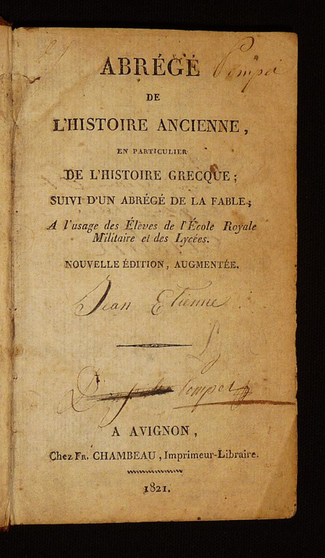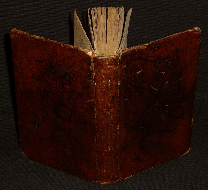 In-12 (9,5 x 16 cm), reliure plein veau, dos lisse, couverture muette, 302 pages ; quelques épidermures sur le cuir, petits manques de cuir aux coins et à la coiffe supérieure, notes manuscrites et gribouillis à l'encre aux plats, contreplats et page de titre, état moyen.