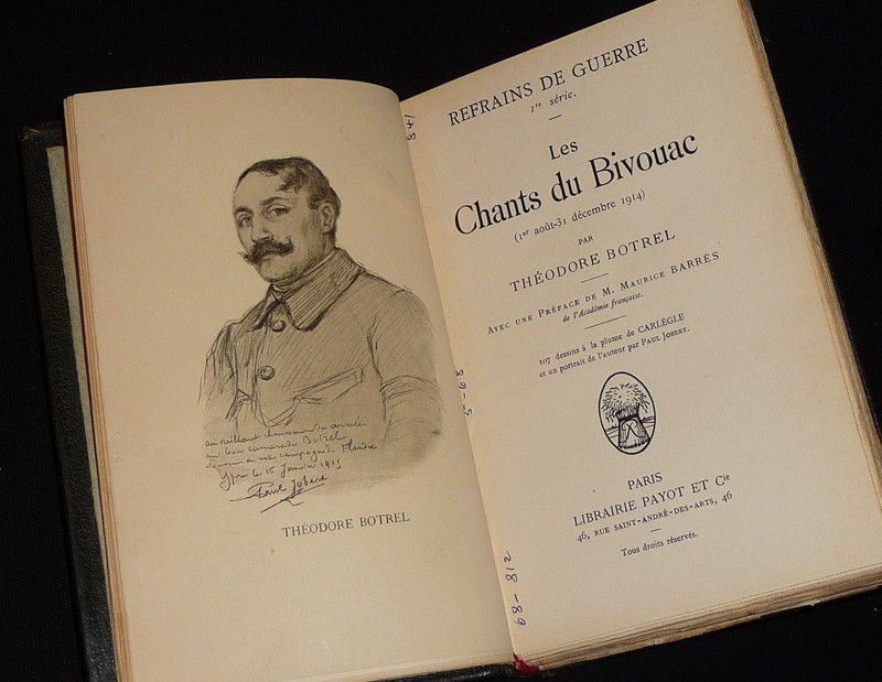 In-12 (12 x 18,8 cm), reliure pleine peau, dos à 5 nerfs, filets d'encadrement et titre doré au premier plat, ex-libris Foxcroft, couverture non conservée, 265 pages, illustrations en noir de Carlègle, portrait de l'auteur par Paul Jobert ; frottements aux mors, coiffes et coupes, note manuscrite sur un feuillet vierge en début d'ouvrage, par ailleurs intérieur frais, assez bon état général.