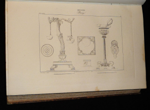 In-4 (19 x 27,5 cm), reliure cartonnée, 69 + 230 pp. + planches hors texte, ce volume contient les bronzes, 2e et 3e série (bustes, lampes), complet des gravures ; mors, coiffes et coupes frottés, quelques mouillures dans les marges à l'intérieur, par ailleurs assez bon état général.