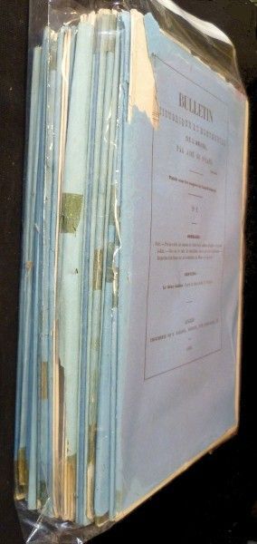 22 volumes in-8 (16,5 x 26 cm.), cahiers sous chemise, environ 30 pages, cahier d'illustrations noir et blanc, du n°1 de 1863 au n°12 de juin 1868 ; déchirure avec manque sur la chemise du n°1, coiffes frottées, dos frottés, chemise manquante sur un numéro, petites déchirures aux bords, intérieur frais, assez bon état pour ce lot de 22 bulletins.