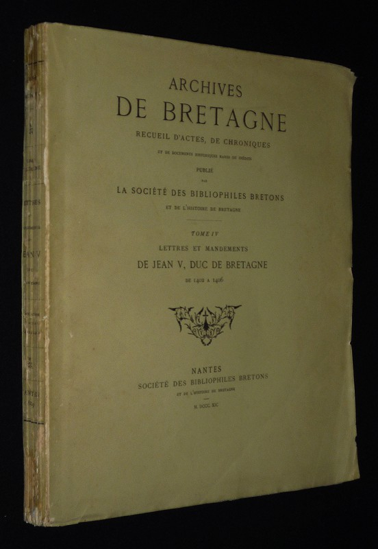 Archives de Bretagne : Recueil d'actes, de chroniques et de documents historiques, Tome 4 : Lettres et mandements de Jean V, duc de Bretagne de 1402 à 1406