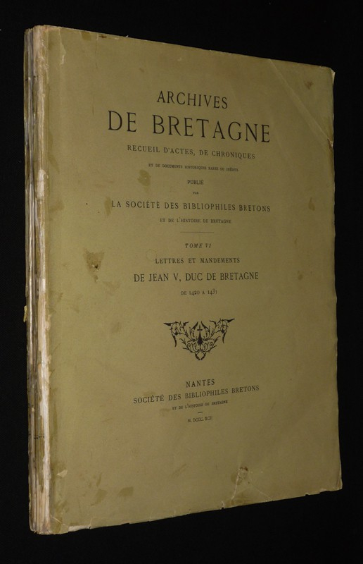 Archives de Bretagne : Recueil d'actes, de chroniques et de documents historiques, Tome 6 : Lettres et mandements de Jean V, duc de Bretagne de 1420 à 1431