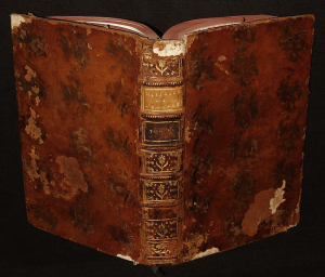 In-8 (13,5 x 20,7 cm), reliure plein veau, dos à 5 nerfs orné de caissons dorés et d'une pièce de titre, 518 pages ; manques de cuir à la coiffe supérieure, dans les coins et au premier plat, épidermures sur les plats et mors, par ailleurs intérieur frais, état moyen.