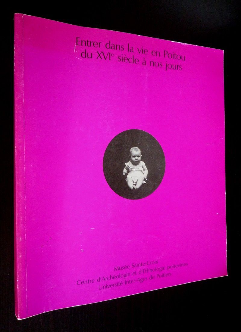 In-8 (21 x 24 cm), broché, 182 pages, illustrations en noir et blanc, catalogue de l'exposition "Entrer dans la vie en Poitou du XVIe siècle à nos jours" (Musée Sainte-Croix de Poitiers, 18 décembre - 2 mars 1988) ; catalogue légèrement gondolé, quelques marques d'usage sur les plats, par ailleurs intérieur très frais, bon état général.