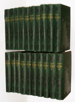 Vingt volumes in-8 (15,7 x 23,3 cm), reliure pleine toile, dos lisses, décor en noir sur les dos et plats, ensemble complet, sans date, 355-356 pages par volume (sauf volume 20 : 400 pages), illustrations en noir ; marques de frottements aux plats et coiffes plus ou moins importantes selon le volume, taches blanches au quatrième plat du tome 11, mors inférieur du tome 1 fendu en tête, quelques rousseurs à l'intérieur, par ailleurs assez bel exemplaire.
