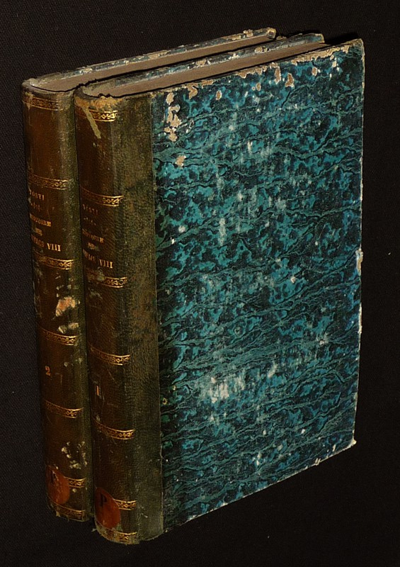 Deux volumes in-8 (14,7 x 21,5 cm), reliure demi-basane, dos lisses ornés de dorures, XXIV-470 et 506 pages, complet en deux tomes, frontispice ; étiquette aux dos, épidermures sur le cuir, épidermures papier sur les plats, coupes usées, des mouillures à l'intérieur par ailleurs relativement bien conservé, pages cornées au tome 1, en l'état.