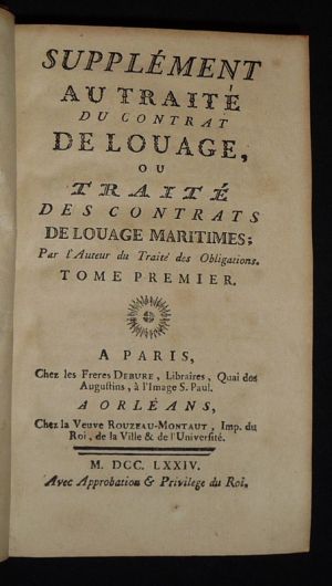 Supplément au traité du contrat de louage, ou traité des contrats de louage maritimes