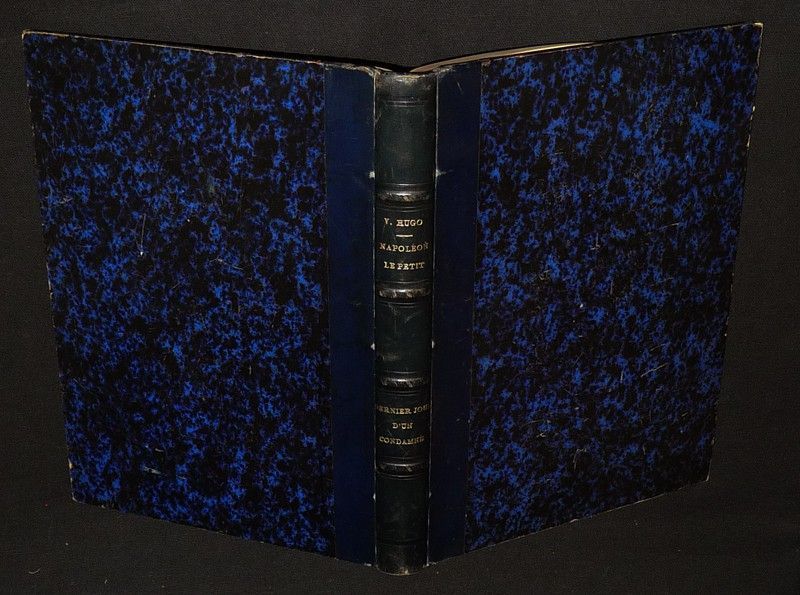 In-8 (19 x 27 cm), reliure demi-peau, dos à 4 nerfs, deux ouvrages reliés en un volume : "Napoléon le petit" (1879, 225 pp.) et "Le Dernier Jour d'un condamné, suivi de Claude Gueux" (s.d., 114 pp.) ; quelques épidermures sur les plats, par ailleurs bon état général.