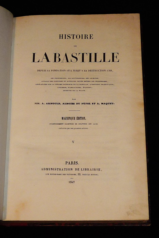 In-4 (17,5 x 25 cm), reliure demi-chagrin, dos à 4 nerfs orné de caissons dorés, tome 5 (344 pp.) et tome 6 (336 pp.) reliés en un volume, gravures en noir hors texte ; petites déchirures à la coiffe supérieure, frottements aux plats et coupes, quelques rousseurs à l'intérieur, par ailleurs assez bon état général.