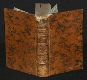 In-12 (10 x 16 cm), reliure plein veau, dos à 5 nerfs, tranches marbrées, 430 pages, tome 7 seul ; épidermures sur le cuir, manque à la coiffe supérieure, par ailleurs intérieur frais, assez bon état général.